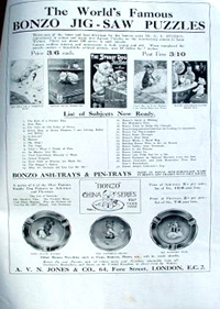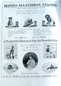 The Sketch issued the first Studdy Dogs Portfolio in 1922 using images taken from the weekly helpings of Bonzo in the Sketch Magazine. Over the next 3 years The Second Studdy Dogs Portfolio, The Bonzo Book (being the Third Studdy Dogs portfolio), Bonzo's Star Turns (being the Fourth Studdy Dogs Portfolio) the Fifth and Sixth Studdy Dogs Portfolios were all issued. Each set contained 15 prints except for the fifth and sixth which had just 8 and each portfolio had a specially drawn cover image. Recently a seventh portfolio has come to light, see further down this page, which also contains 8 prints. After Portfolio 4 there were apparently no announcements in The Sketch that a new set of prints was being issued so that until recently the popular belief was that there were just 6 portfolio's, the discovery of the seventh leaves the way open for the discovery of even more!